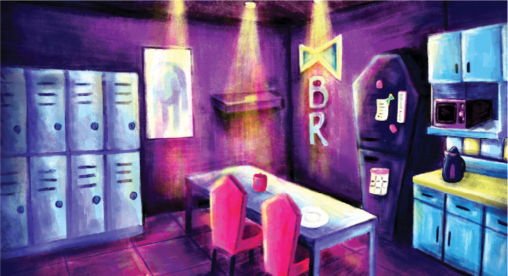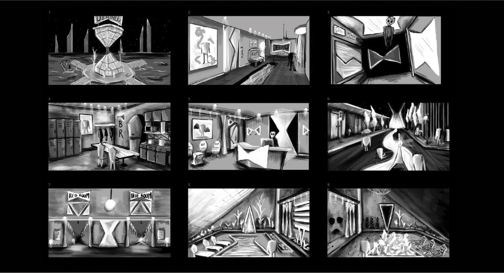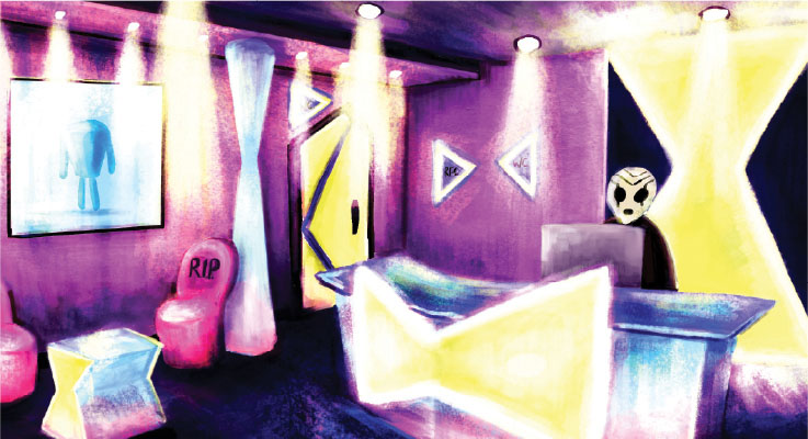 Deathco is a point-and-click management simulation set in a cyberpunk underworld. We were responsible for visualizing the game’s world and its central character, Scry, a grim reaper-inspired figure.