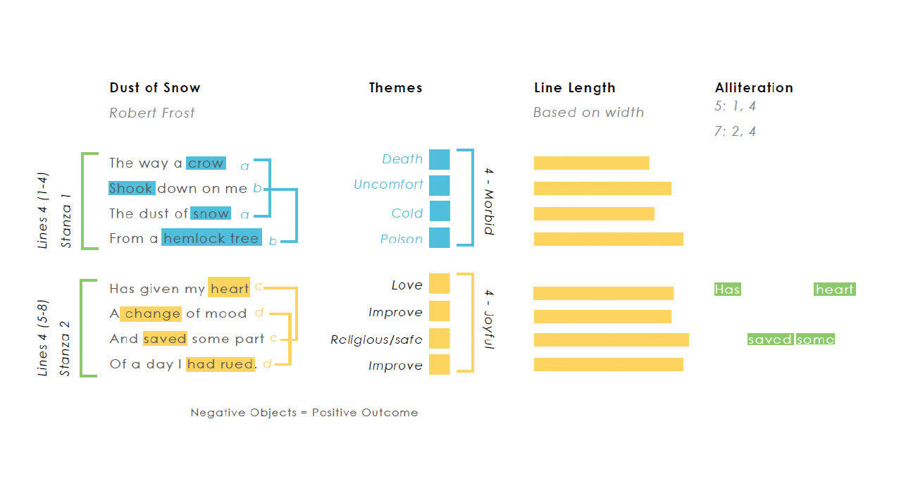 Dust of Snow Poem Visualisation We deconstructed the Poem Dust of Snow by Robert Frost and presented the data in a visual form. #